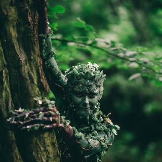 The fourth final image was a collaboration piece with a photographer an an assistant makeup artist to help on the day of the shoot. Overall, the look took around five hours to complete fully, and an assistant was needed at it was a detailed, full body piece that involved face and hand prosthetics, body painting and a costume. In the industry, for this type of look there would be around three people to complete the piece with each person responsible for different sections to improve time efficiency. In the future, further collaboration would be needed with a fashion department to improve the costume quality and have a full team working on each aspect of the design. The shoot took place on location in a forest to complete the overall effect of the design with the model blending into the background, and the photographer captured the model in a variety of poses that highlighted the different design elements (figure 1, 2, 3, 4). The photos produced were the highest quality of the final images, and the character design would fit well into a fantasy film or television show. If this look was to be recreated, further detail would be added to the front and backs of the legs to match the level of detail on the torso and arms, which was missed due to time constraints.